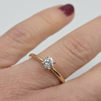 Solitaire « Belle époque » Diamant 0,30 ct sur or rose